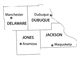 Zip codes in Dubuque IA that we cover are Dubuque county: 52001, 52002, 52003, 52004, 52040, 52068, 52033, 52046, 52045, 52052, 52039, 52073, 52053, 52032, 52065, 52078, 52079, 52056 and 52099; Delaware county: 50654, 52035, 52036, 52038, 52041, 52050, 52057, 52223, 52237 and 52330; Jackson county: 52030, 52031, 52054, 52060, 52064, 52069, 52070, 52071, 52074, 52075, 52207 and 52309; Jones county: 52205, 52212, 52252, 52305, 52310, 52312, 52320, 52321, 52323, and 52362.